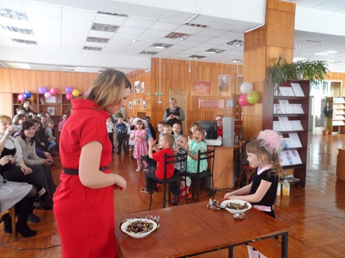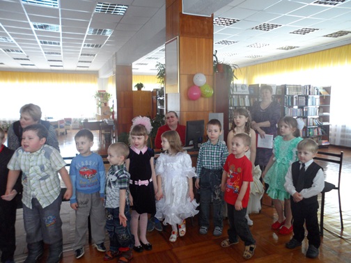 6 марта библиотеку посетили родители и дети старшей группы, став участниками программы «Устами младенца». Детей и родителей ожидали разнообразные конкурсы: «Объедалки», «Развлекалки», «Узнавалки»…. И конечно же стихи,песни,подарки,игры,танцы,чаепитие.