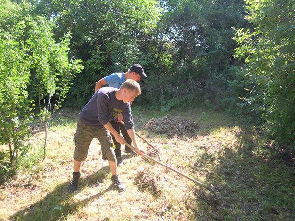 Самым серьезным испытанием для ребят стал дендрарий. Кроме травы , высотой в человеческий рост, под каждым кустом ребята находили «сюрпризы»(в виде пивных и водочных бутылок). Эти находки юноши выгружали носилками в тракторную телегу. Создается впечатление, что все пьющее население села собирается на территории школьного дендрария, чтобы на лоне природы встретиться с Бахусом. Думается, что и школьники не остаются в стороне от столь вопиющего беспорядка. Потом сами и устраняют его.
