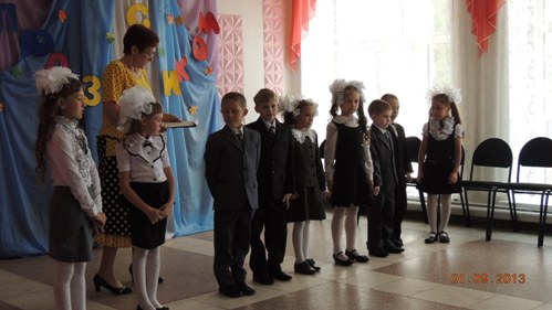 Самый ответственный момент посвящения в первоклассники провела Жевлакова М.А. Ученики дали клятву хорошо учиться и слушаться родителей. В ответ прозвучала клятва родителей всегда помогать детям.