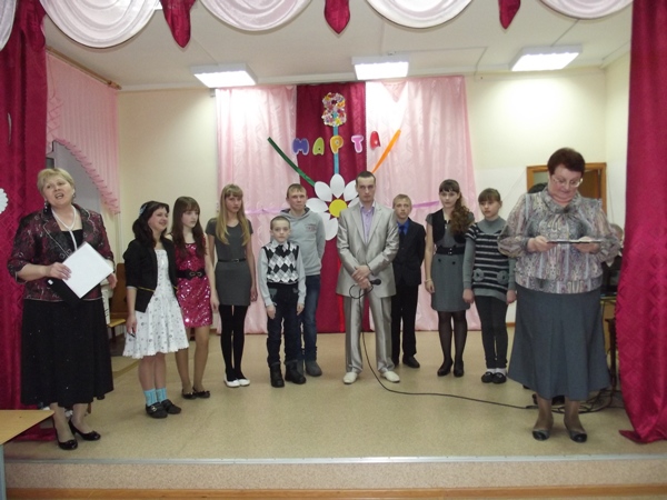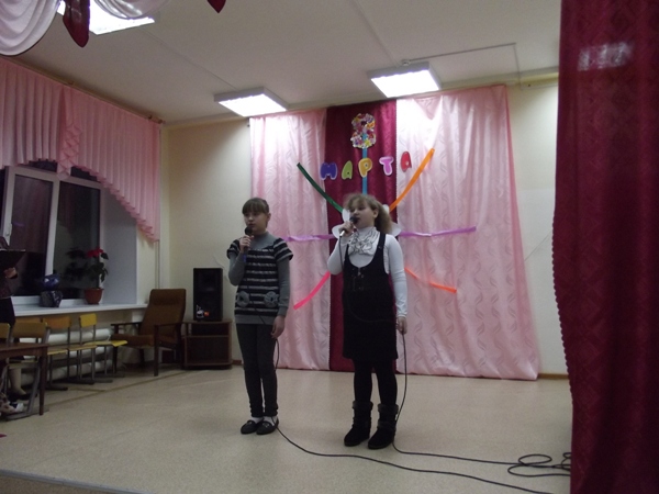 На празднике звучали песни, дети исполняли танцы, читали стихи для мам и бабушек. Для зрителей прозвучал шуточный монолог от ведущих «Ради тонкой талии»; дети показали миниатюру «Как поздравить маму».