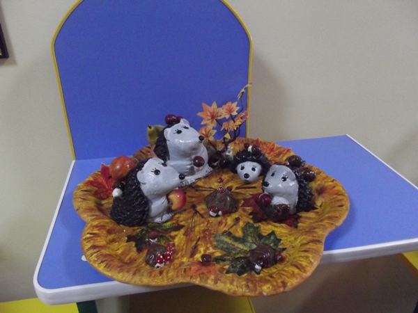 Панно с цветами и персонажами сказок и мультфильмов, веселая дружная семейка ёжиков – всё это работы воспитателя Лидии Владимировны Снегиревой.