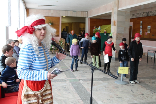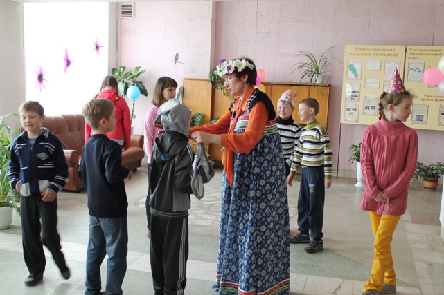 В этот день в Доме культуры собралось много ребятни и взрослых. Всех их уже ждали герои сказочных перевоплощений – работники ДК: «Марья-искуссница» (В.Е. Тарасюк), «Разбойница-пиратка» (И.Ю. Трепухалова), «Фея цветов» (М.А. Жевлакова) и веселые озорницы-скоморошинки (Настя Гильдебранд и Алена Ануфриева).