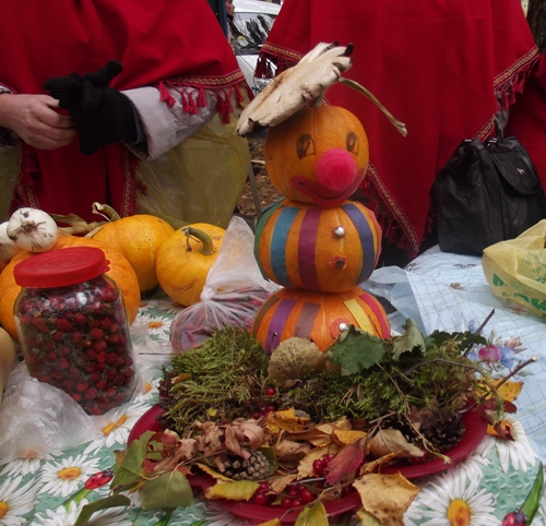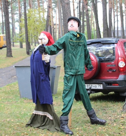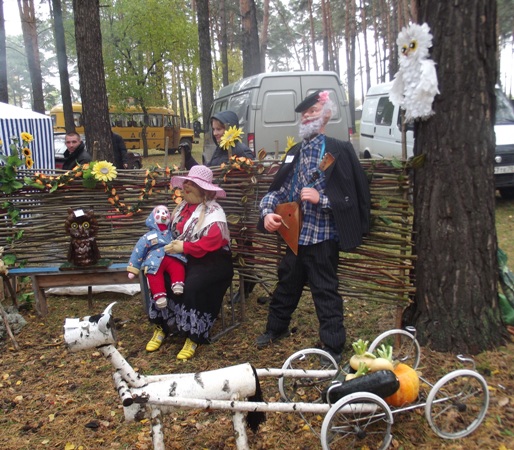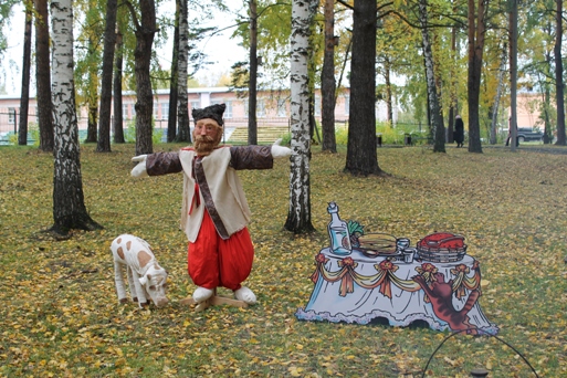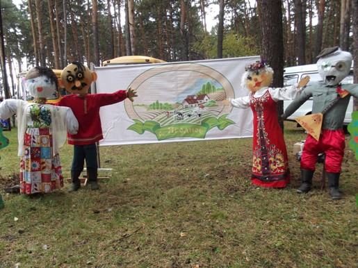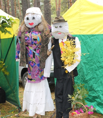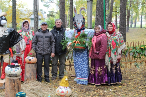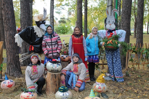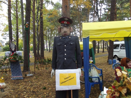 Новокусковское поселение представило целую композицию из чучел и улыбающихся тыкв. Торговый ряд охранял «народный участковый».