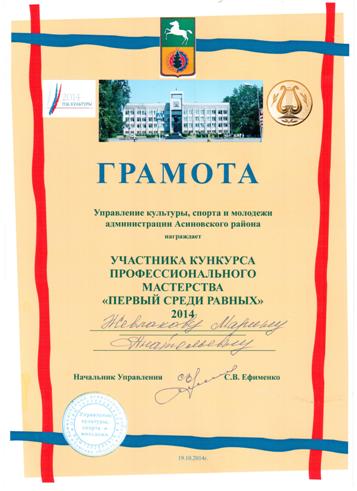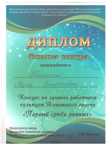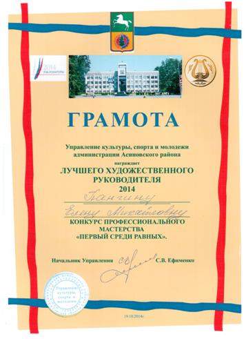 19 октября 2014 года в ГДК «Восток» состоялся ежегодный конкурс на лучшего работника культуры Асиновского района «Первый среди равных».