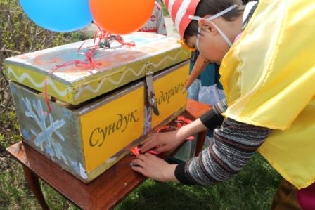 Участники квеста хорошо справлялись с заданиями, и вознаграждением стал золотой ключ, хранившийся в сундуке. А Буратино в знак благодарности все ребят угостил сладостями.
