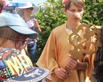 Ребят на кругосветке ждали театрализованные персонажи: черепаха Тортила на площадке «В гостях у Тортилы», кот Базилио на «Поляне Чудес», лиса Алиса – «В гостях у Алисы». Волк Забивака и Буратино помогали ребятам справляться с испытаниями, которые встречались на их пути.