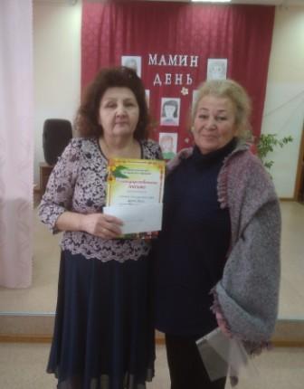 Председатель Совета ветеранов Т.В. Пинигина поздравила всех мам с праздником и вручила семье Чанчиковых грамоту за 2-е место в областном конкурсе «Ветеранское подворье».